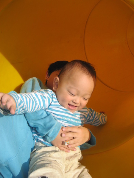 過一下,哥哥說,媽媽你讓弟弟上來,我抱他溜滑梯