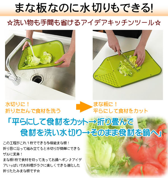 切完的東西,可將砧板折疊起放置水龍頭下沖洗,也可直接放入鍋中烹煮,很方便ㄛ