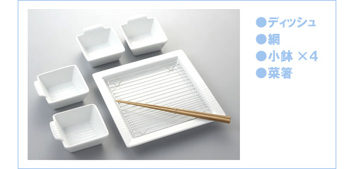 Kスタジオの白いお皿と網がセットになったクーラーディッシュです。フライや天ぷら、ドーナツ、揚げパンなどの揚げ物に使えば、余分な油を落とし、カロリーカットでヘルシー!さらに揚げたての「カリッ」とした食感をキープしたまま、食卓へ出せます。