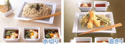 クーラーディッシュなら、キッチンペーパーも油切りも不要です。揚げたてのフライや天ぷらをそのままクーラーディッシュに置けば、油切りしながらそのままテーブルへ!揚げたてをおいしくいただけるだけでなく、キッチンペーパー不要油切りバットを洗う手間も省けます。