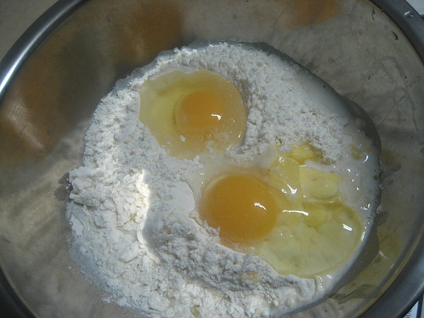 再將兩顆蛋打入,我就開始手動攪拌囉