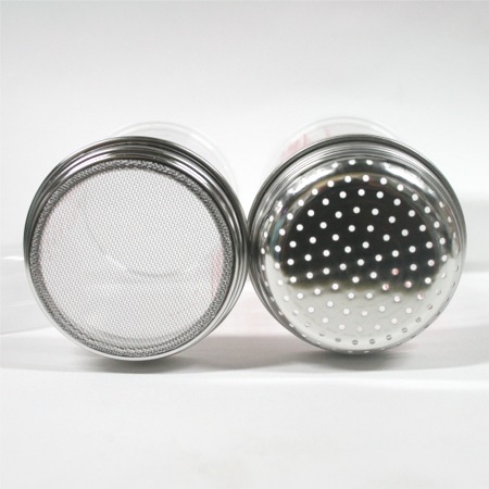 1つは細かいメッシュ、1つは丸穴パンチングになっているので、ふるうシーンに合せて使い分けできます。