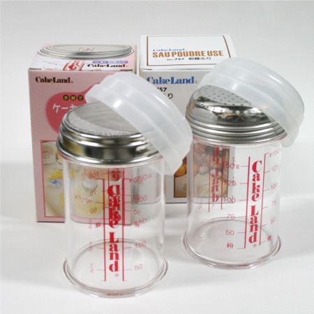 目盛りが付いているので計量したまま、粉・粉糖がふるえ、上面が網になっているのでまんべんなく使用できます。