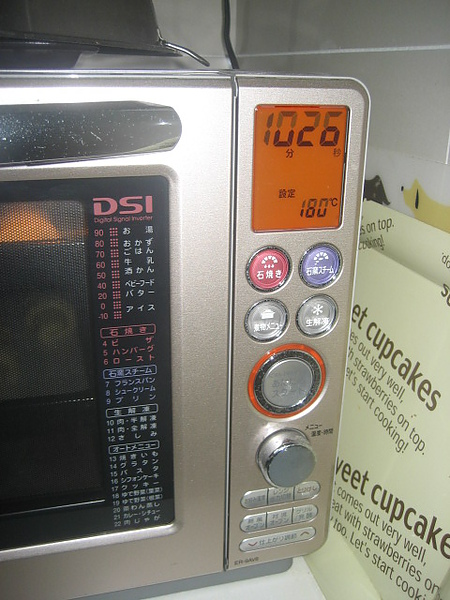 烤箱預熱180度後,就將麵糰放入囉,我設定時間是10分30秒