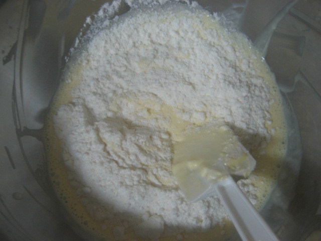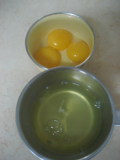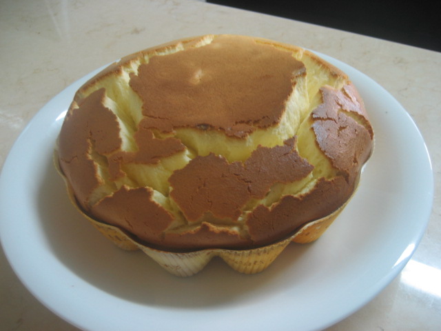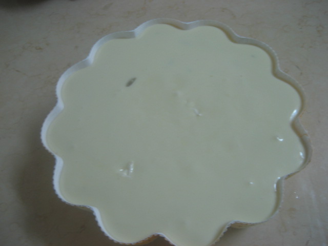 然後倒入紙模中,快滿出來了耶(顏色是很漂亮的鵝黃)