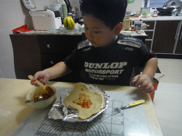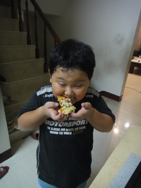 想說要烤四塊,爸爸一塊,兩個哥哥各一塊,我跟小老虎一塊