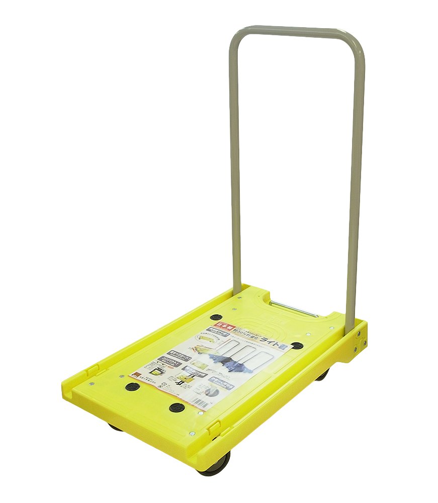 ●買い物荷物の運搬やゴミ出し等に便利です。 ●隙間収納可能なコンパクトサイズで車載用としても最適(収納時サイズ:長さ726mm 幅385mm 高さ127mm)。●専用持ち手穴付で持ち運びも便利です。●高精度ベアリング採用で走行抵抗を軽減し、軽く押せます。●積載面は滑り止め付き(4箇所)で運搬中の荷物の安定に役立ちます。●平台車としても利用可能です。●積載荷重100kg。●金象印のプラキャリーラック ライト君をDCMでは販売しております。その他の運搬用品・脚立も多数取扱っております。